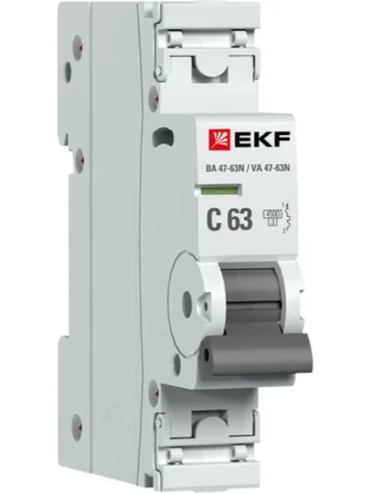 Автоматический выключатель 1P 63A (C) 4,5кА BA 47-63 EKF PROxima для защиты цепей от перегрузок. Надежный, компактный, простой в установке.