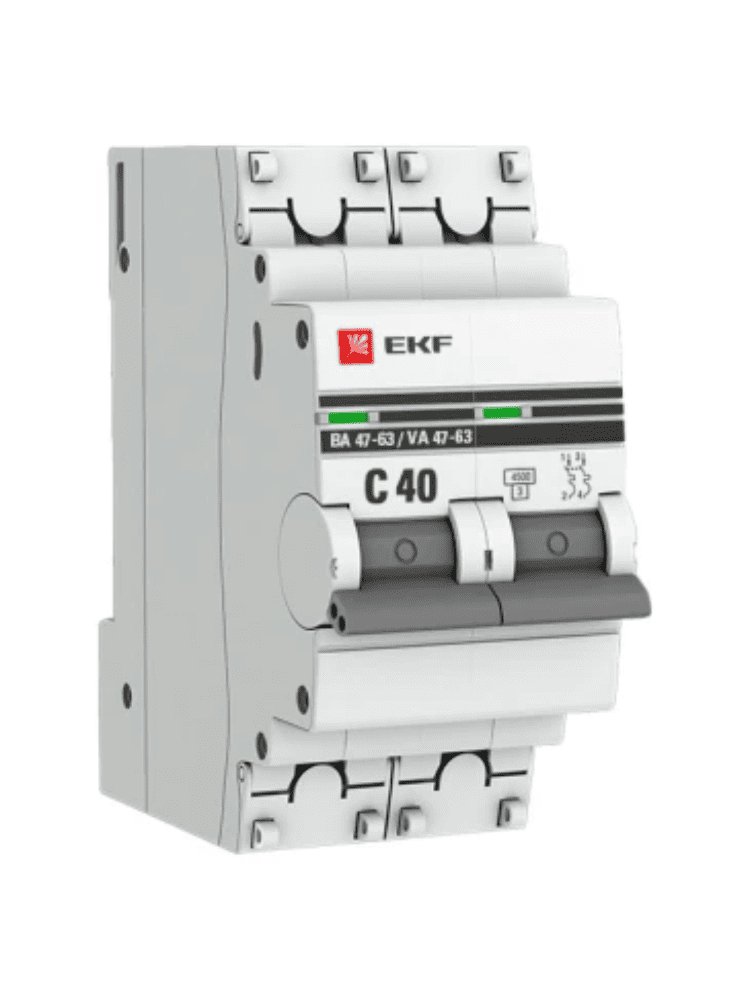 Автоматический выключатель 2P 40A (C) 4,5кА EKF PROxima BA47-63 для защиты цепей от перегрузок и КЗ. Надежный, с удобным монтажом на DIN-рейку.