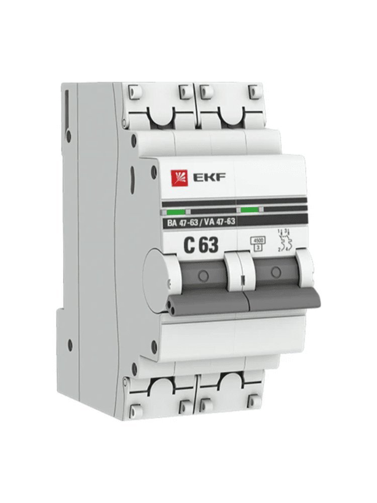 Автоматический выключатель 2P 63A (C) 4,5кА EKF PROxima для защиты цепей от перегрузок и замыканий. Надежный, компактный, для бытовых и промышленных сетей.