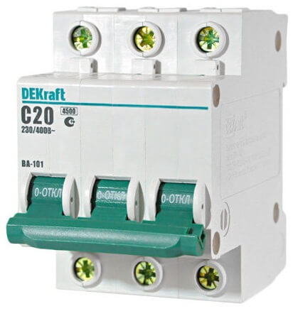 Автомат 3P 20A (C) 4,5кА BA-101 DEKraft (4) в Спасск-Дальний