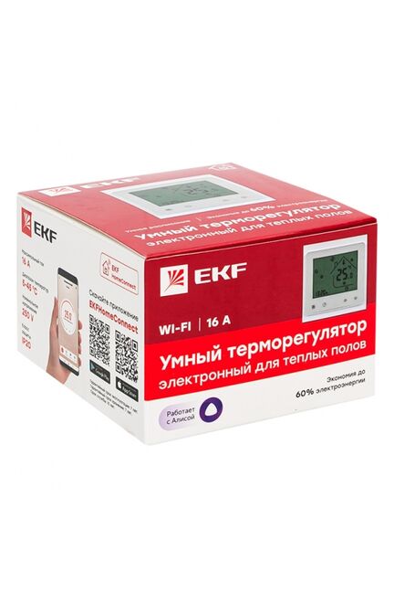 Умный термостат EKF Connect для электрического тёплого пола позволяет выставлять температуру как на самом устройстве, так и из приложения EKF Connect или через голосового помощника от Яндекса — Алису. Можно включать тёплый пол по расписанию. У термостата два датчика температуры: встроенный датчик температуры воздуха и выносной датчик температуры пола. Также есть функция антизамерзания, которая включит тёплый пол, если температура опустится ниже 5 градусов, и функция определения открытого окна, которая отключит тёплый пол на время проветривания, чтобы не тратить энергию зря. Умный термостат делает дом более комфортным и экономит электроэнергию.