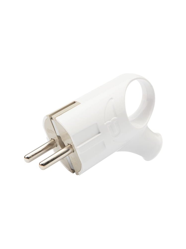 Практичная угловая вилка 16А с кольцом и заземлением — компактна, удобна для труднодоступных розеток, обеспечивает надёжное подключение.