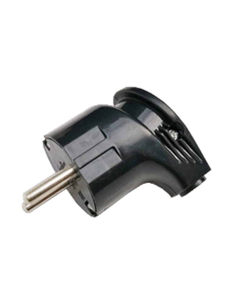 Угловая вилка 16А с заземлением, черная, для безопасного подключения техники в труднодоступных местах, корпус из термостойкого пластика.