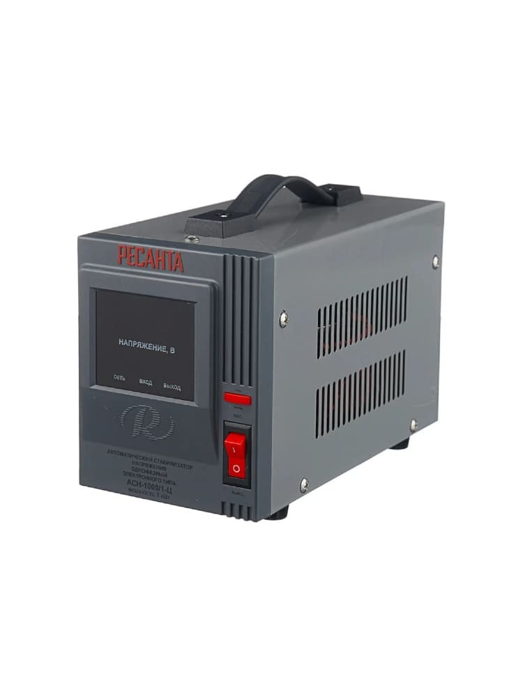 Стабилизатор напряжения Ресанта АСН 1000/1-Ц предназначен для защиты от перепадов напряжения бытовых электроприборов с суммарной мощностью до1 кВт. Предусмотрены входной и выходной фильтры частотных помех  - можно подключать высокоточные и чувствительные к качеству питания устройства. Автоматическое отключение нагрузки при превышении поддерживаемого напряжение происходит всего за 0.35  секунды. Для защиты техники от перепадов напряжения 140–260В, цифровой дисплей, мощность 1 кВА, простая установка, надежная работа.