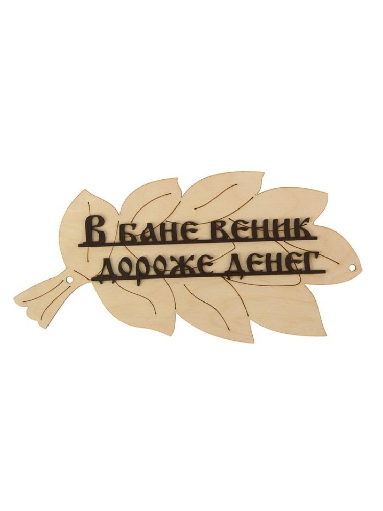 Табличка для бани "В бане веник дороже денег" в виде веника 30х17см