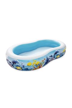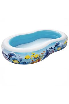 Яркий надувной бассейн с мягким дном и прочным ПВХ, быстро устанавливается, легко чистится, безопасен для детей от 1 года, весит всего 1,56 кг.