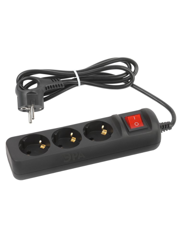 Удлинитель 3 гнезда 3м с з/к выкл. 10А 3х0,75 ПВС черный ЭРА