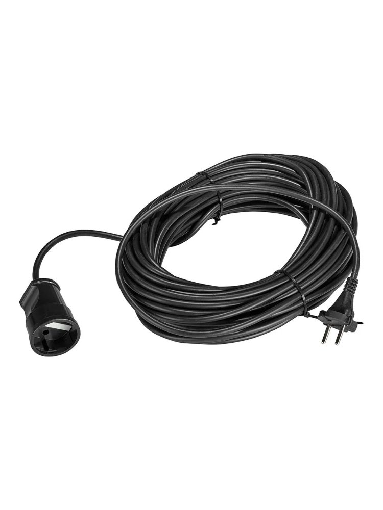 Удлинитель 20 м, прочный ПВС-кабель 2х0,75 мм², 1 гнездо, 6А, черный. Идеален для стройки, ремонта и сада — надёжное питание техники на расстоянии.