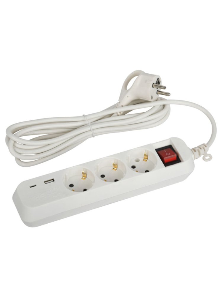 Многофункциональный удлинитель идеально подходит для использования в доме, офисе, мастерской и на стройплощадке — подключайте до трёх электроприборов и заряжайте гаджеты с помощью USB и Type-C портов одновременно.