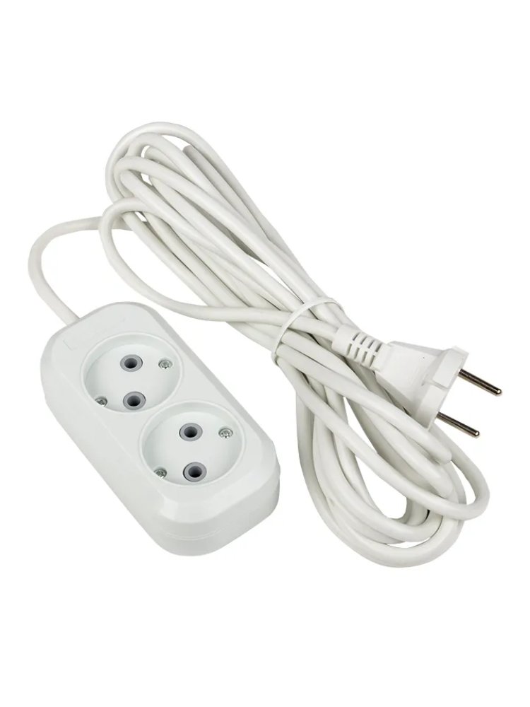Удлинитель на 2 гнезда, 3 м, 10А, без заземления, для бытового и строительного применения, надёжность и удобство подключения техники.