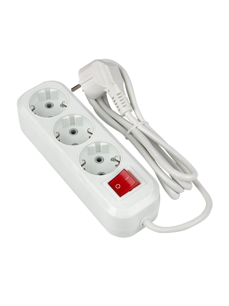 Удлинитель на 3 розетки, длина кабеля 2 м, ток до 10А, сечением 2х0,75 мм², без заземления — для дома, офиса и строительных работ.