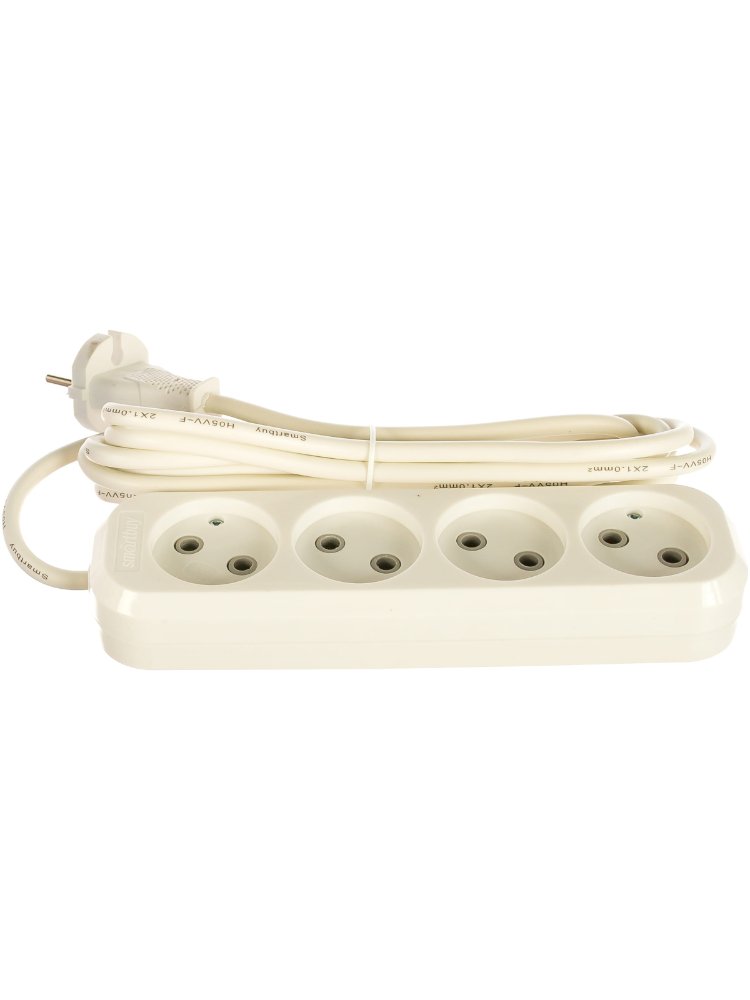 Удлинитель 4 гнезда 3м без з/к 10А 2х1 ПВС Smartbuy