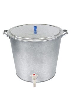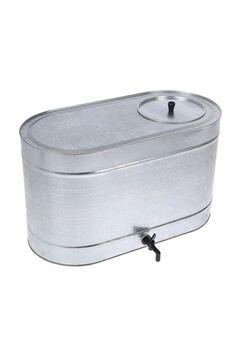 Металлический оцинкованный бак 55 л овальной формы с краном. Для воды. Прочный, устойчив к коррозии, легкая раздача и удобство использования.