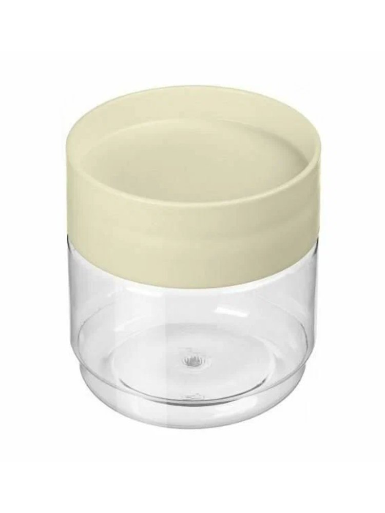Прочная 0,5-литровая емкость светло-бежевого цвета для сыпучих материалов, герметичная крышка, устойчивый к повреждениям пластик.