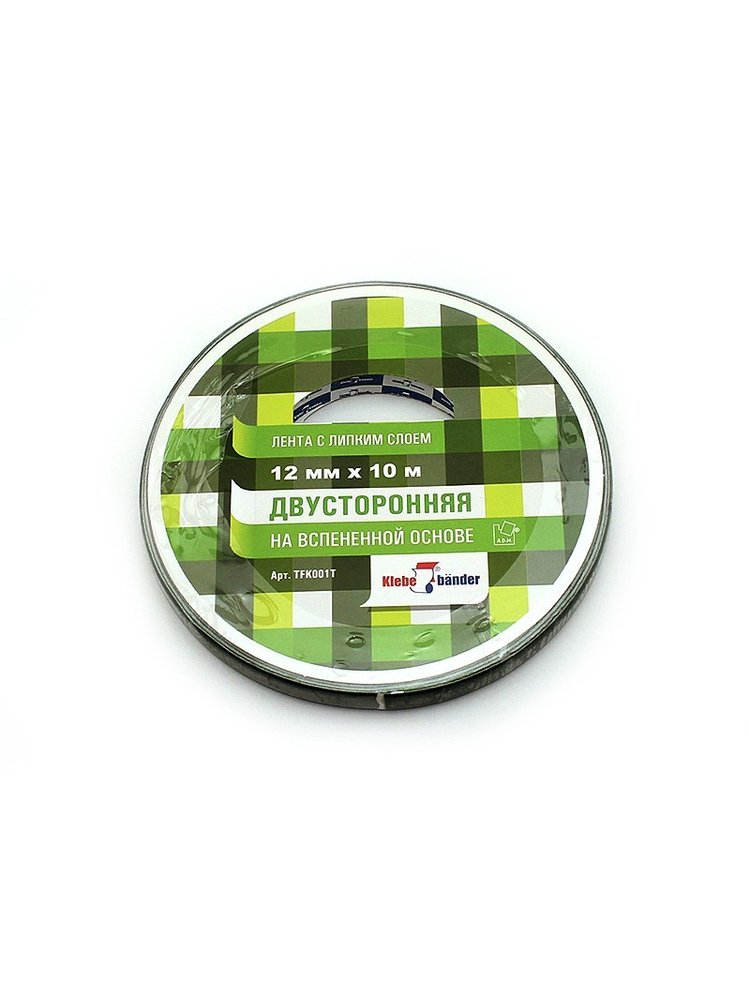 Лента двусторонняя 12мм*10м клейкая на вспененной основе Klebebander