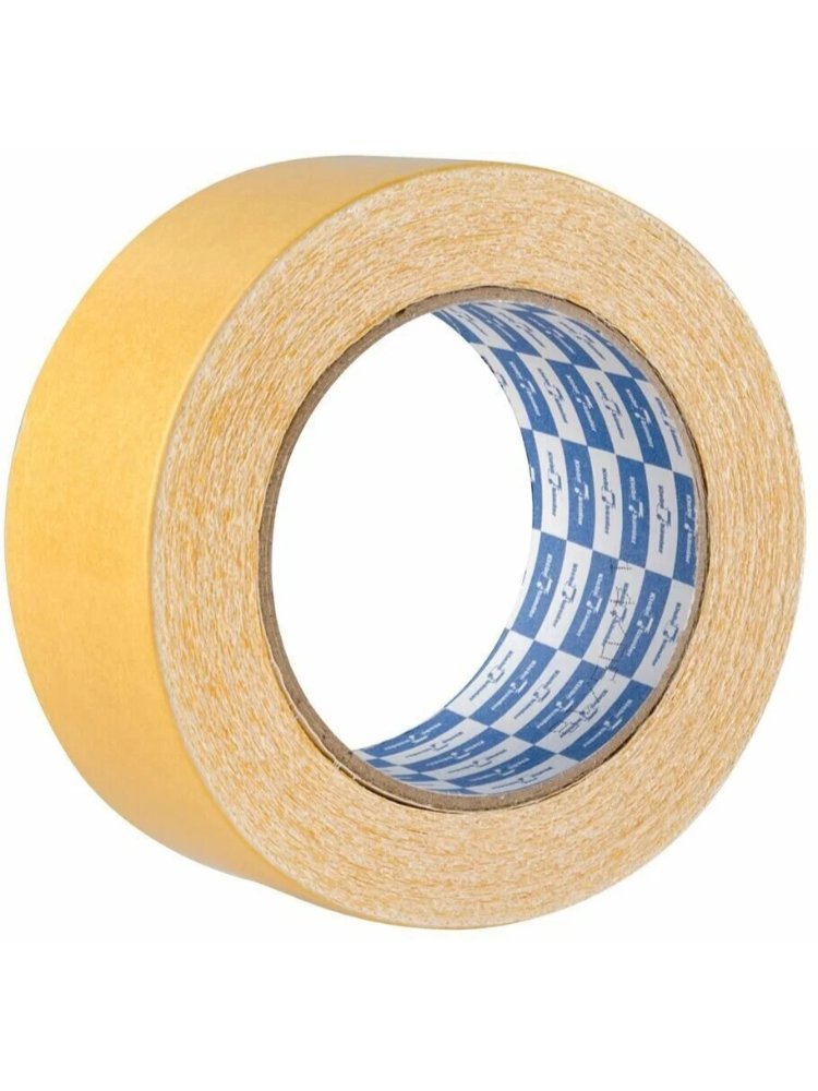 Двусторонняя лента 50 мм*25 м, ткань, высокая адгезия, подходит для крепления покрытий, декора и теплоизоляции, легко удаляется.
