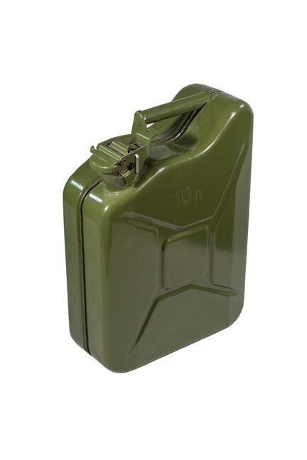 Прочная стальная ёмкость 10 л с антикоррозийным покрытием и герметичной крышкой для безопасного хранения и транспортировки ГСМ.