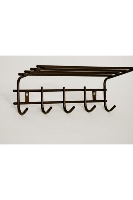 Конструкция из прочного металла с антикоррозийным покрытием оснащена пятью крючками и полкой для хранения головных уборов, аксессуаров и прочих предметов. Компактные габариты и настенное крепление позволяют экономить пространство в прихожих, гардеробных, бытовых и хозяйственных помещениях. Легко монтируется на любую ровную поверхность, устойчива к механическим воздействиям и влаге.