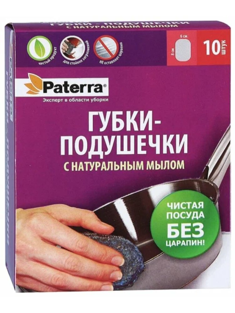 Губка-подушечки с натуральным мылом PATERRA металлические, 10шт в Спасск-Дальний