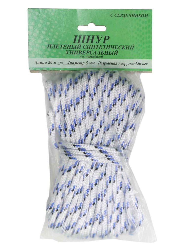 Полиамидный шнур с сердечником 5 мм, 20 м — прочный, влагостойкий, износостойкий, для строительных и монтажных работ, устойчив к разрыву.