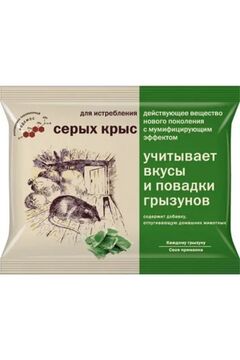 Эффективные гранулы для уничтожения крыс и мышей, обеспечивают защиту помещений, простые в применении, безопасны при правильном использовании.