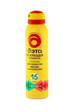 Аэрозоль для защиты от клещей и комаров, объем 150 мл, эффективен до 4 часов, подходит для работы и отдыха на открытом воздухе.