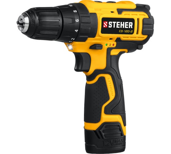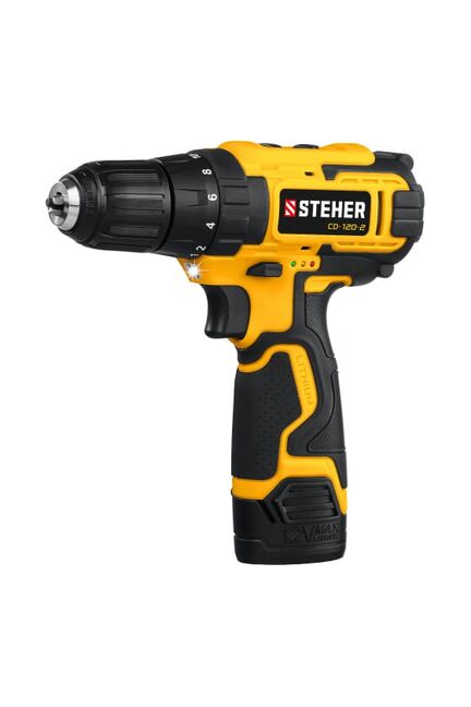 Дрель-шуруповерт STEHER 12В, 2 АКБ 2Ач CD-120-2 предназначен для сверления отверстий в различных материалах, для монтажа и демонтажа резьбовых соединений. Функция блокировки шпинделя обеспечивает удобную замену инструмента в патроне одной рукой. Регулировка частоты вращения помогает настроить дрель в зависимости от вида работ и применяемых материалов. Для продолжительных работ без простоев в комплекте предусмотрено два аккумулятора.