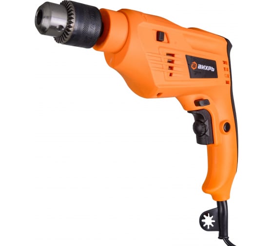 Ударная дрель ВИХРЬ ДУ-700 используется для сверления отверстий в различных материалах. Дрель укомплектована надежным электрическим двигателем мощностью 700 Вт. Для сверления отверстий на заданную глубину предусмотрен специальный ограничитель.  Благодаря ударному механизму с помощью данного инструмента можно сверлить отверстия в бетоне и кирпичной кладке. Рукоятка имеет выступ на нижней части и мягкую вставку для надежного удержания дрели во время работы. Продолжительная бесперебойная эксплуатация инструмента обуславливается качественными комплектующими. Для более удобной работы предусмотрена фиксация клавиши пуска в положении "старт". Дрель - мощность 700 Вт, сверление с ударом, регулируемые обороты и реверс. Для дерева, металла и бетона. Быстрая смена оснастки и удобство работы.