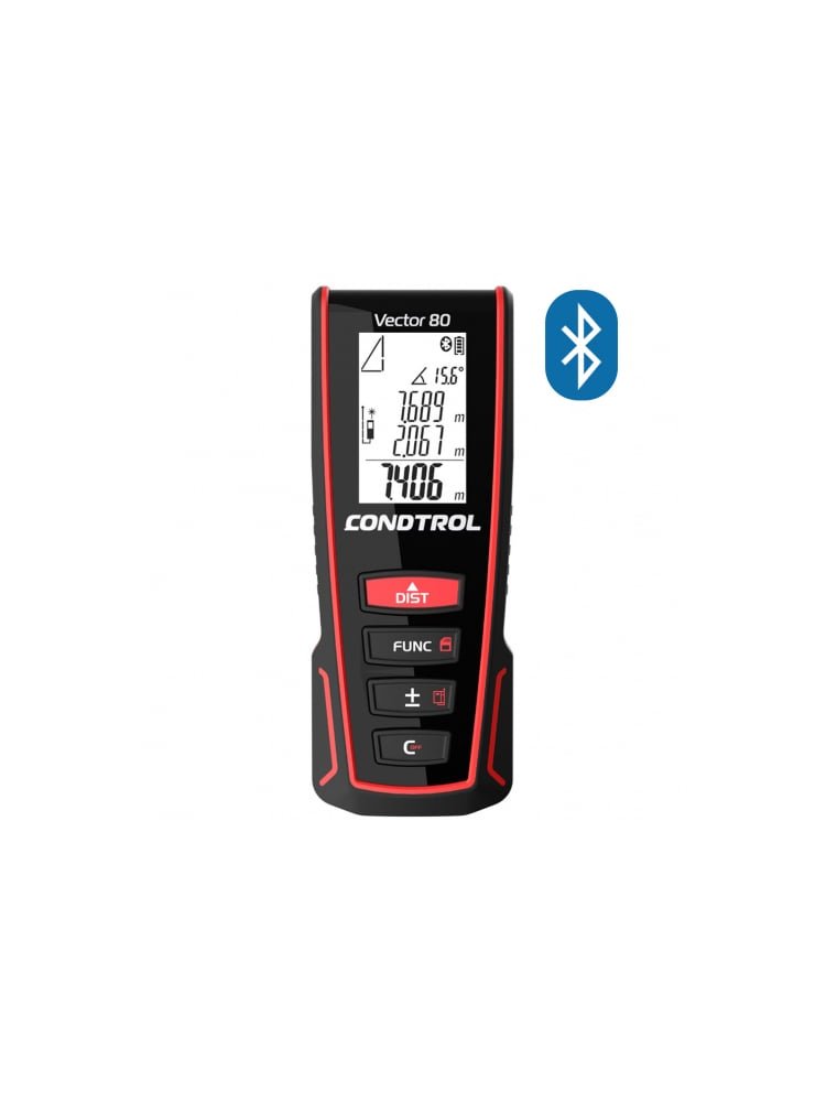 Лазерный дальномер Condtrol Vector 80 используется строителями, отделочниками, монтажниками и прочими мастерами. Позволяет быстро измерить расстояние как в помещении, так и на улице. Прибор имеет большое количество функций: трекинг (непрерывное измерение), сложение/вычитание, вычисление площади и объема, вычисления по теореме Пифагора, вычисления при помощи датчика наклона, вычисление расстояния между двумя точками. Измерения могут проводиться с передней или задней стенки корпуса, со штатива, откидной скобы. Встроенная функция Bluetooth дает возможность передавать полученные результаты на смартфон или планшет. Измеряет до 80 м, высокая точность ±1,5 мм, функции работы с площадью и объёмом, память на 30 значений, ЖК-дисплей, компактность.