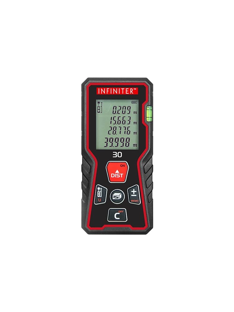 Лазерный дальномер INFINITER 30 1-2-325 используется для измерения расстояний, длин, высот, проведения вычисления площадей и объемов измеряемых объектов, а также косвенных измерений с помощью теоремы Пифагора. Можно производить измерения как в помещении, так и на улице. Оснащен пузырьковым уровнем для получения наиболее верных результатов измерений. Данная модель имеет яркий дисплей и крупные цифры, которые прекрасно видно как в темноте, так и при свете. Для удобного использования предусмотрен небольшой вес и компактные размеры. Боковые части корпуса оснащены ребристой поверхностью, поэтому прибор не будет скользить в руке. Быстрые и точные замеры до 30 м, расчёт площади и объёма, компактность и простота – идеальное решение для ремонтных и строительных работ.