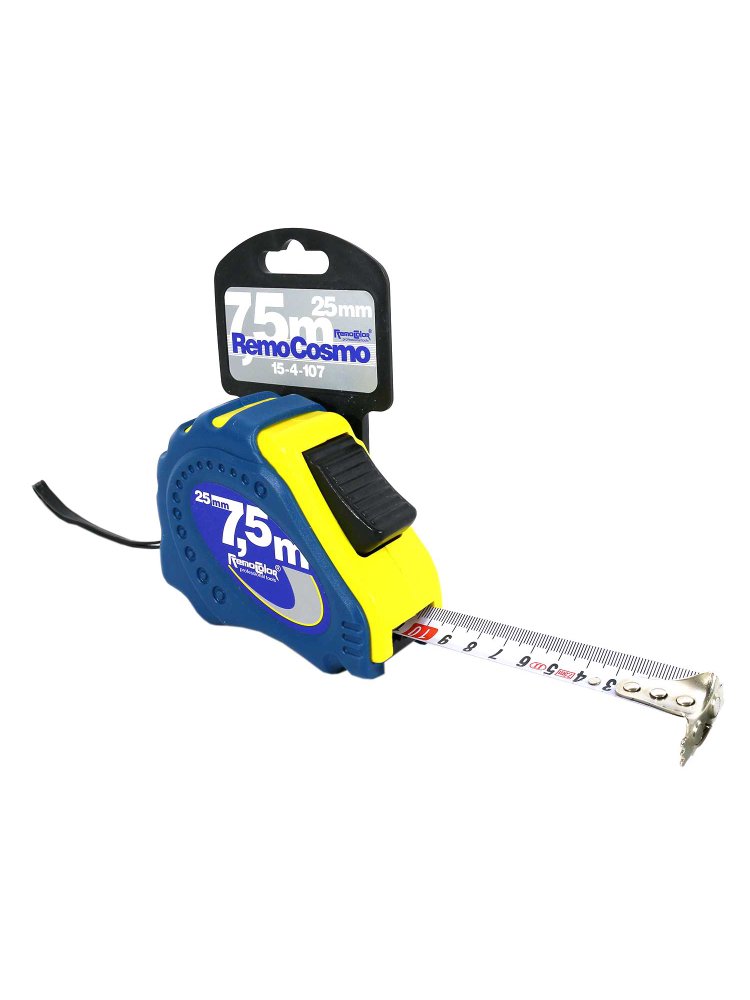 - Длина полотна — 7,5 м, ширина — 25 мм: идеально подходит для работы в больших помещениях и на улице.