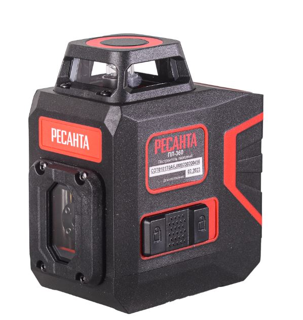 Лазерный построитель плоскостей Ресанта ПЛ-360 выполнен из ударопрочного пластика с прорезиненными вставками. Диаметр резьбы ¼ дюйма позволяет устанавливать уровень на штатив для быстрого перемещения в прост