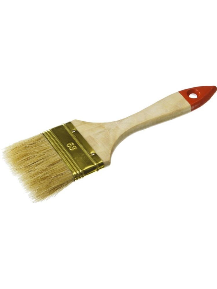 Профессиональный инструмент для качественной окраски: плоская кисть с натуральной щетиной и деревянной ручкой идеально подходит для нанесения лакокрасочных материалов на ровные и слегка текстурированные поверхности. Благодаря ширине 63 мм кисть обеспечивает равномерное покрытие больших участков, сокращая время работы.