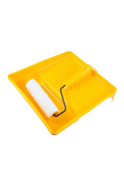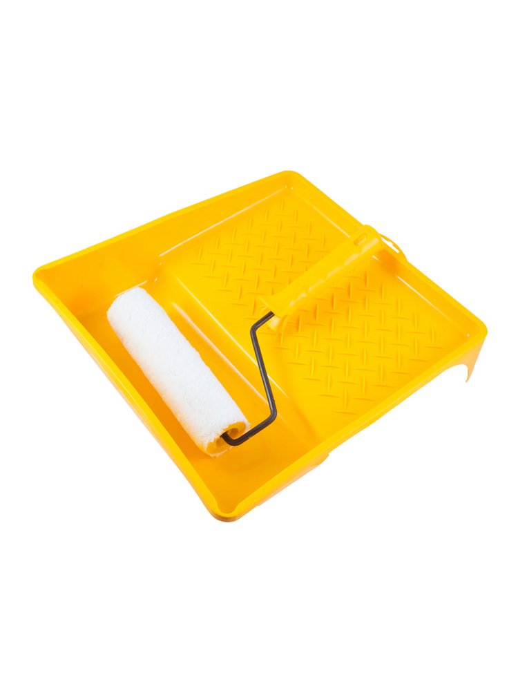 - Удобная пластиковая ванночка 245×330 мм — устойчивое основание для равномерного распределения краски по валику, облегчает работу и предотвращает перерасход материала.
