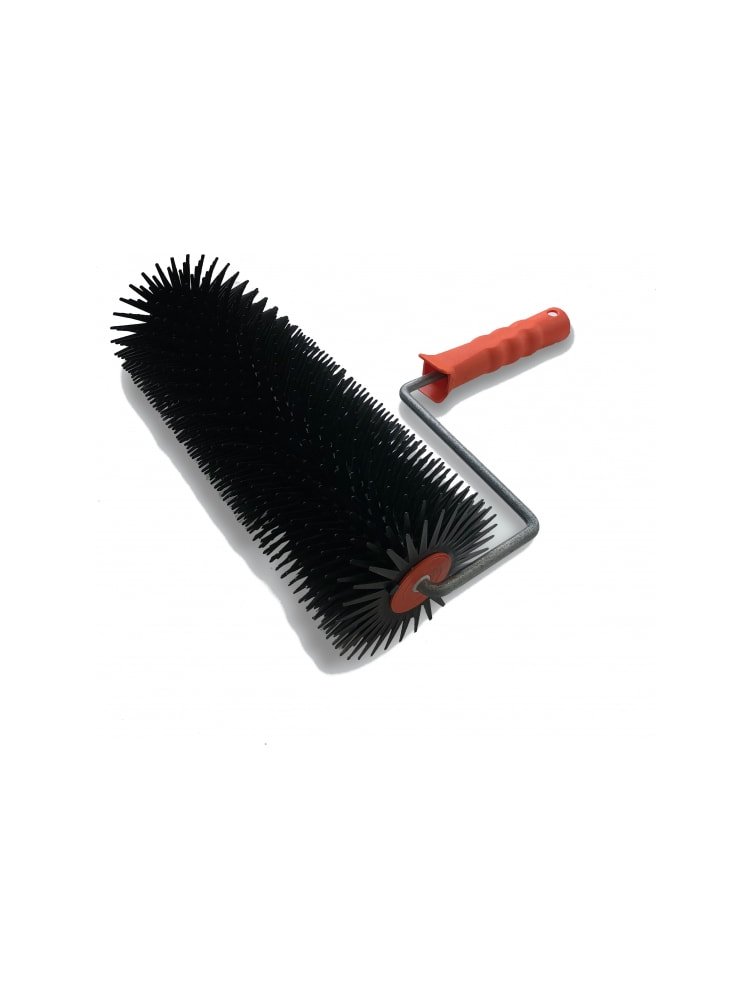 Игольчатый валик 240 мм — идеальный инструмент для работы с наливными и самовыравнивающимися полами. Его конструкция позволяет быстро и качественно удалять воздушные пузырьки и равномерно распределять смесь по поверхности, обеспечивая идеальное выравнивание пола.