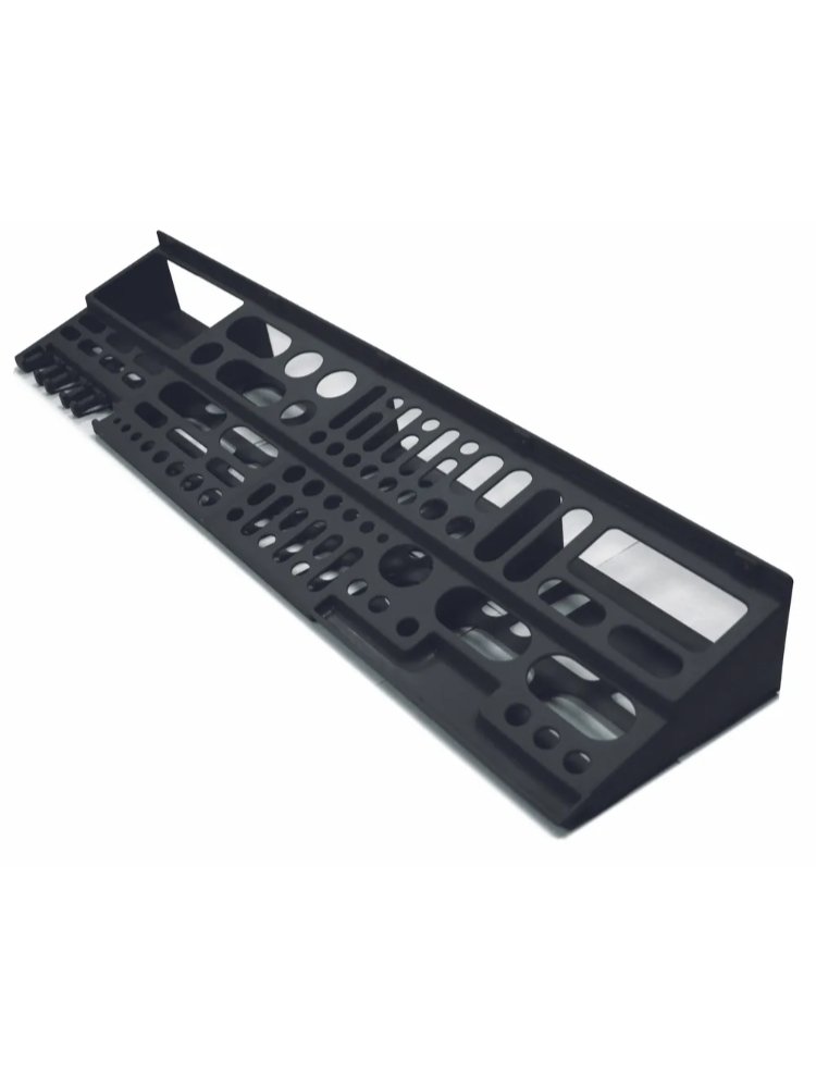 Могут соединяться друг с другом. Для хранения инструмента,крепится к стене. Ячейки разного размера позволят удобно разместить инструмент. Удобная пластиковая полка с 6 крючками для хранения инструментов и аксессуаров, легко крепится на стену, устойчива к влаге и износу.