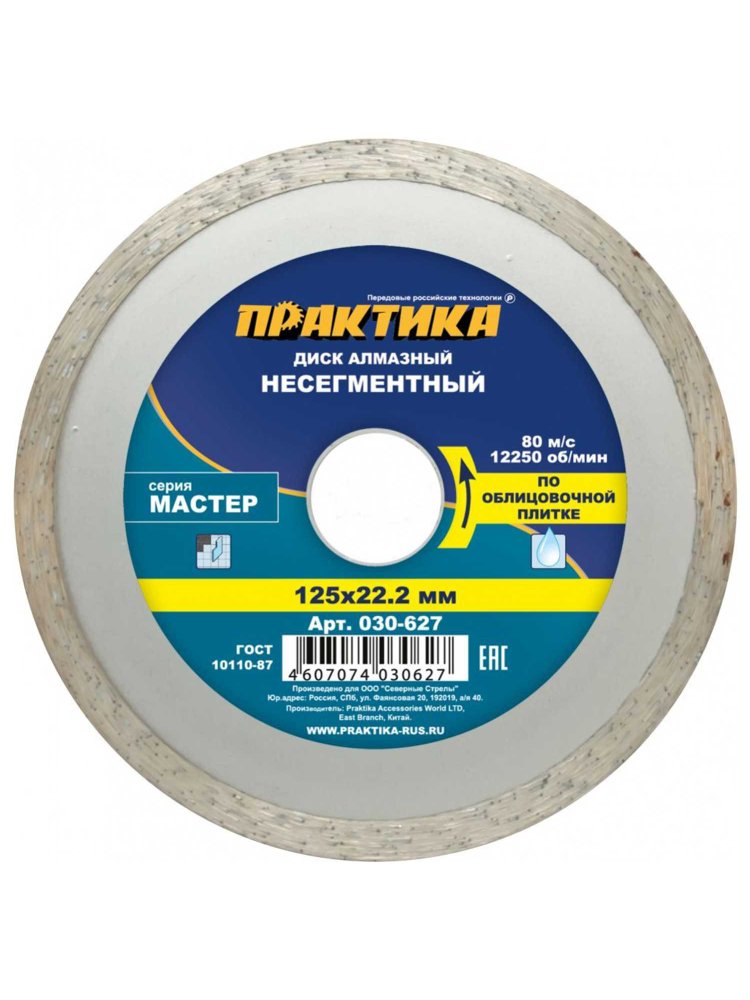 Диск алмазный несегментный ПРАКТИКА "Мастер" 125x22 мм коробка
