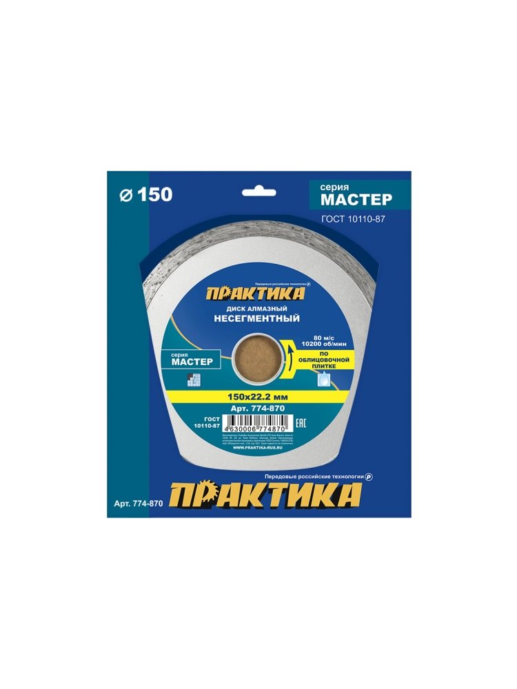 Диск алмазный несегментный ПРАКТИКА "Мастер" 150*22 мм в Спасск-Дальний