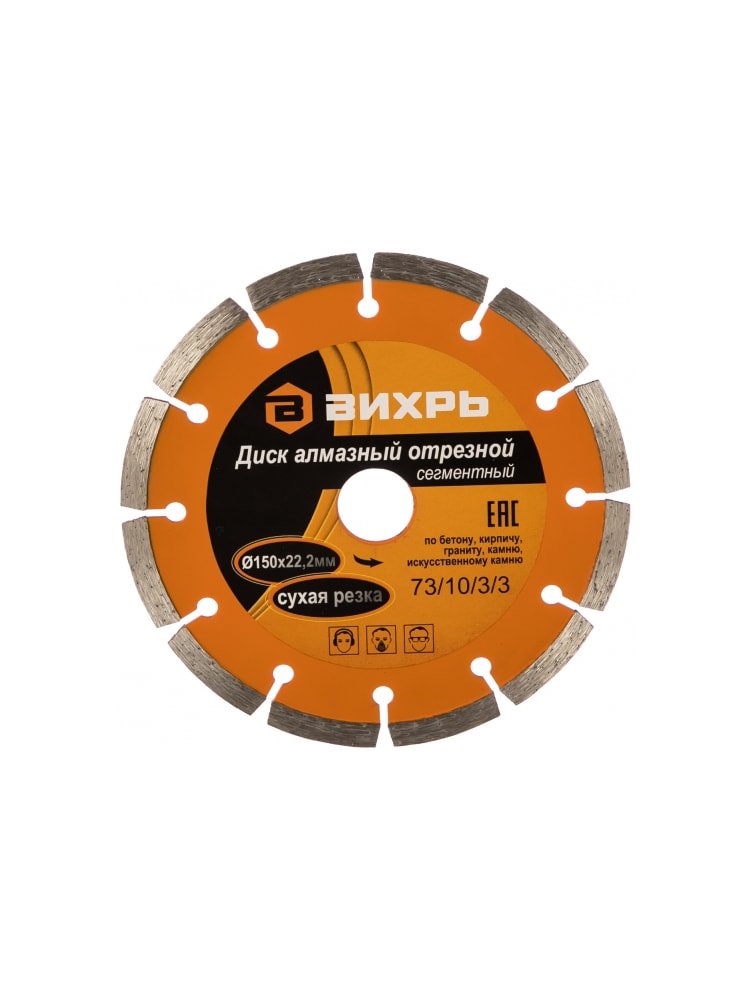Диск алмазный отрезной сегментный ВИХРЬ 150х22,2 мм,сухая резка