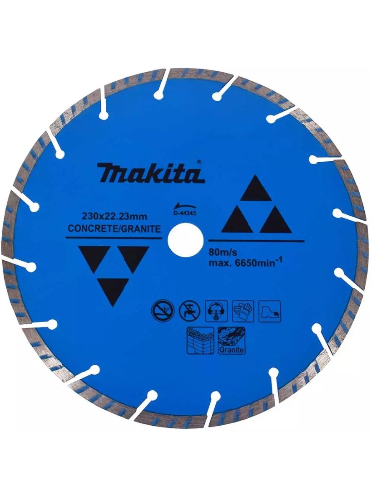 Откройте новые возможности резки с профессиональным алмазным диском сегментного типа Турбо MAKITA D-44345! Идеален для работы по бетону, керамограниту, граниту и другим прочным стройматериалам, этот инструмент сочетает высокую скорость и точность с длительным сроком службы.