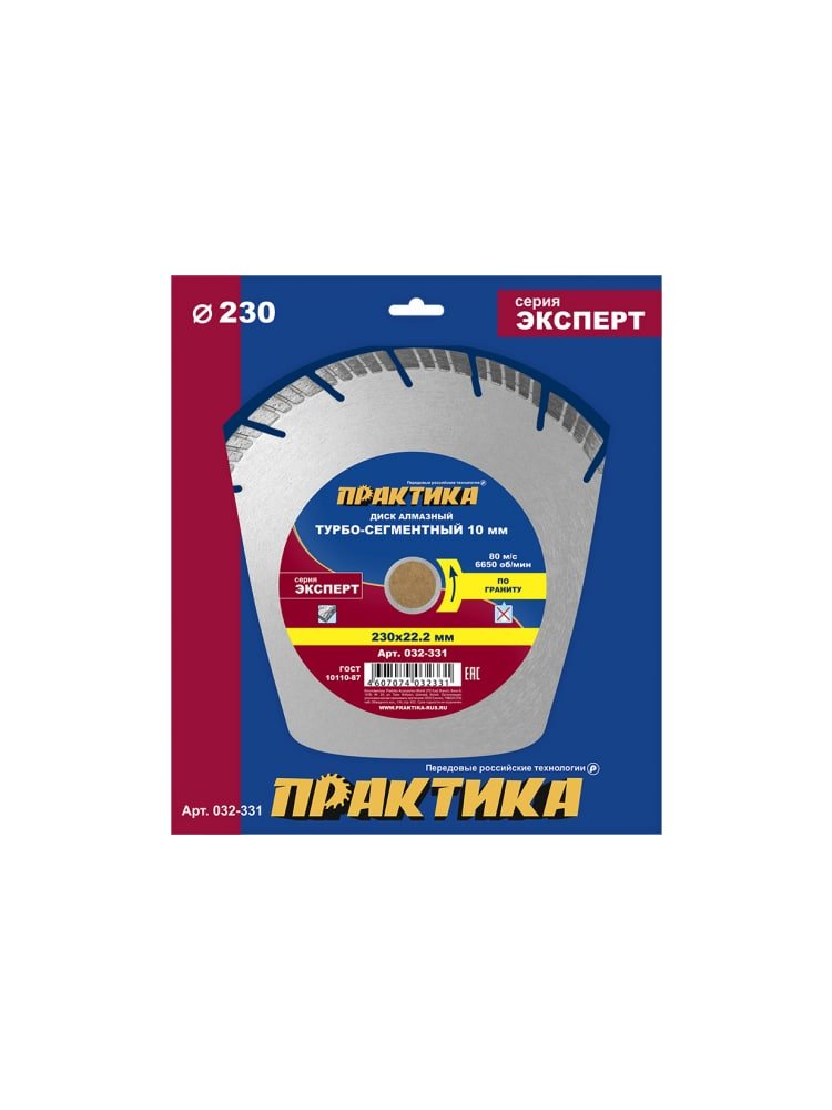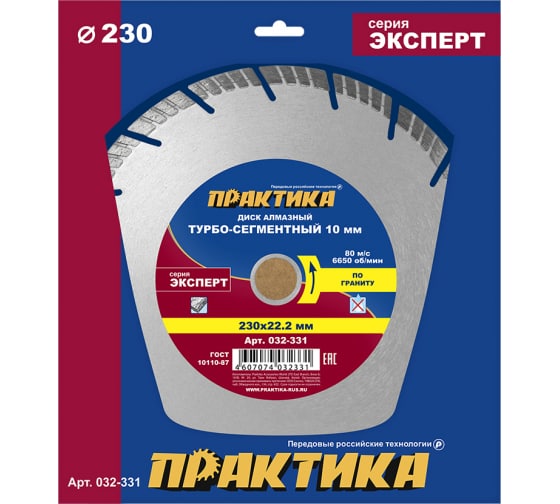 Диск алмазный турбосегментный ПРАКТИКА "Эксперт-гранит" 230*22 мм, сегмент 10 мм в Спасск-Дальний