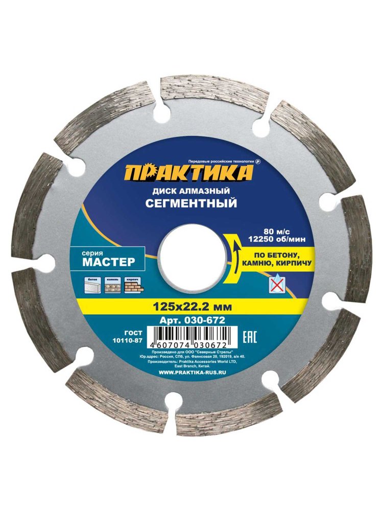 Диск алмазный сегментный ПРАКТИКА "Мастер" 125x22мм коробка в Спасск-Дальний