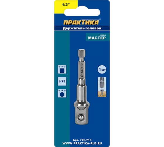 Держатели головок. Серия "Мастер". Держатели предназначены для быстрой смены головок с посадкой внутренний квадрат при работе шуруповертом. Изготовлены из высококачественной инструментальной стали твердостью HRC48-52 с фиксацией головки шариком.