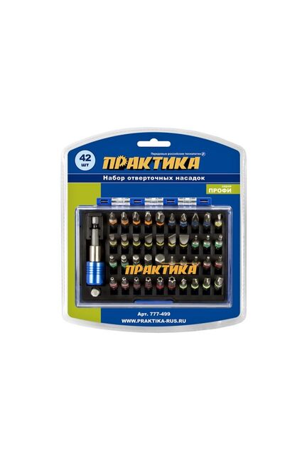 - В комплекте 42 биты: самые востребованные типы – PH, PZ, SL, Hex, Torx, Tri-Wing для разных шлицов.