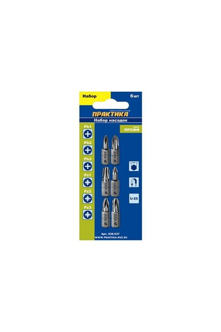 Набор бит ПРАКТИКА "Профи" PH1,2,3; PZ1,2,3*25 мм, 6 шт в Спасск-Дальний