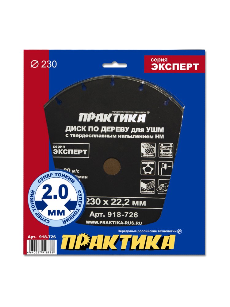 Диск по дереву с твердосплавным зерном ПРАКТИКА 230х22 мм для УШМ в Спасск-Дальний