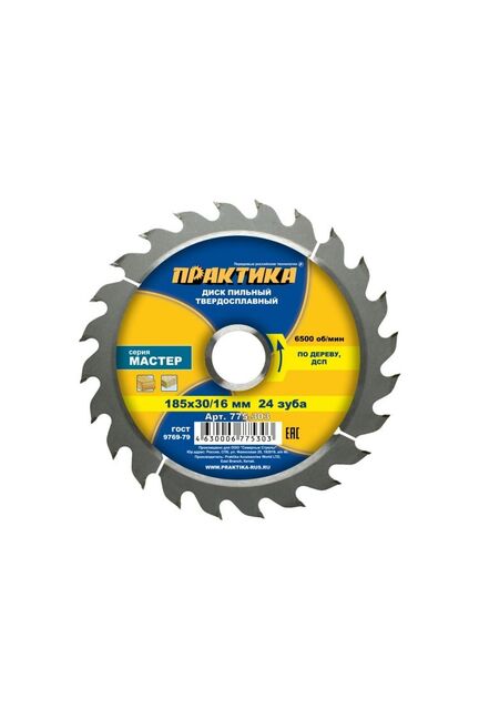 Диск пильный твёрдосплав. по дереву ДСП ПРАКТИКА 185х30\20\16 мм, 24 зубов в Спасск-Дальний
