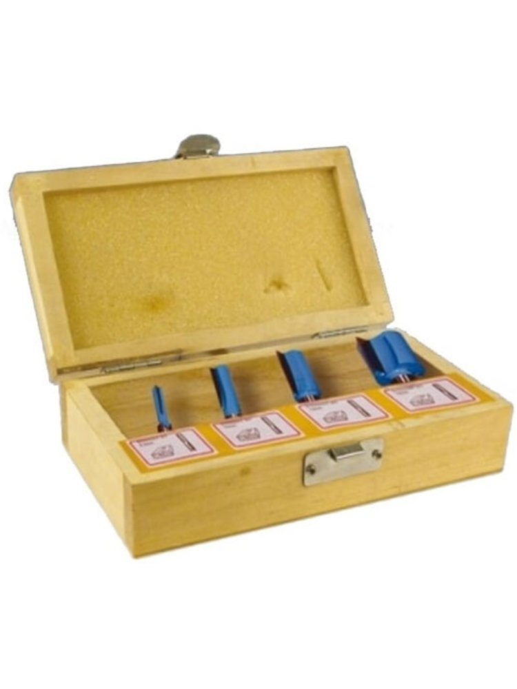 - В комплекте 4 универсальные фрезы для фрезеровки — прямая, кромочная, пазовая и фасонная.