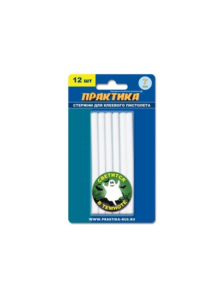 Клей для клеевого пистолета ПРАКТИКА белый, светящийся в темноте, 7x100 мм, 12шт в Спасск-Дальний