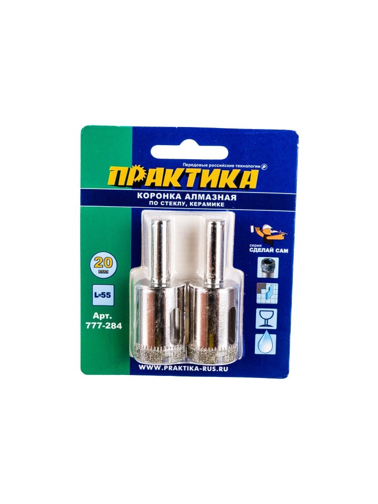 Коронка алмазная по стеклу и керамике ПРАКТИКА "Сделай сам" 20 мм, 2 шт в Спасск-Дальний